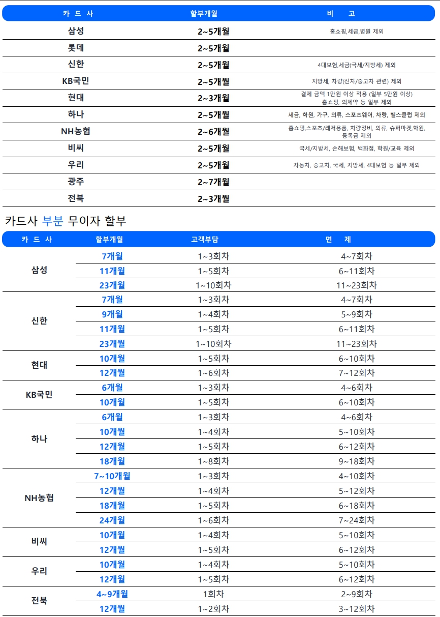 2025년 01월 무이자 할부 안내
